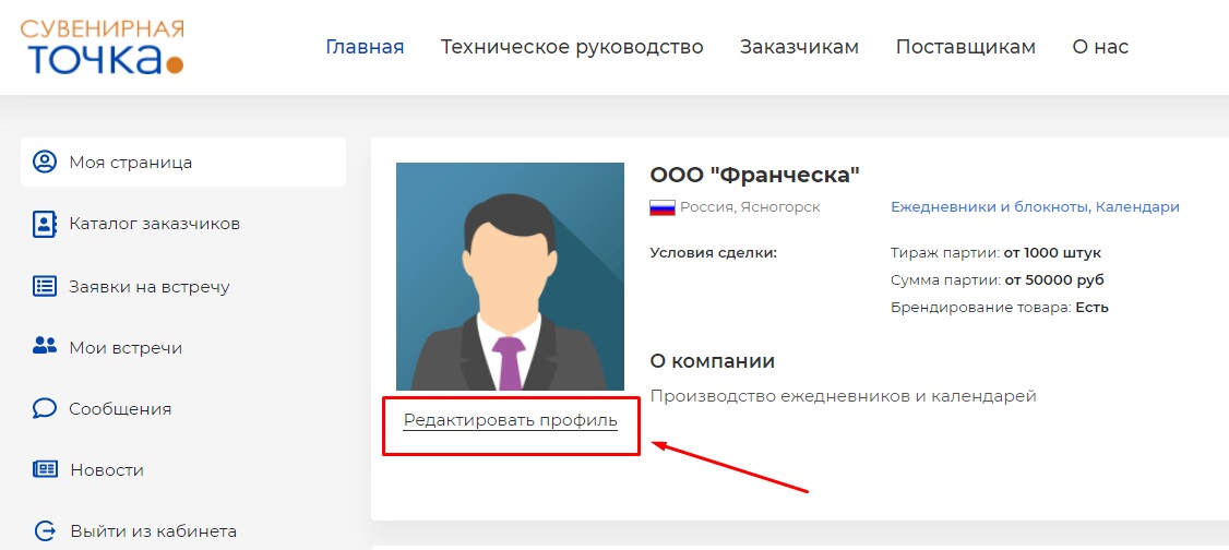 Особенно важно заполнить поля "Сферы деятельности", "Минимальный тираж", "Минимальная сумма заказа", "Брендирование".